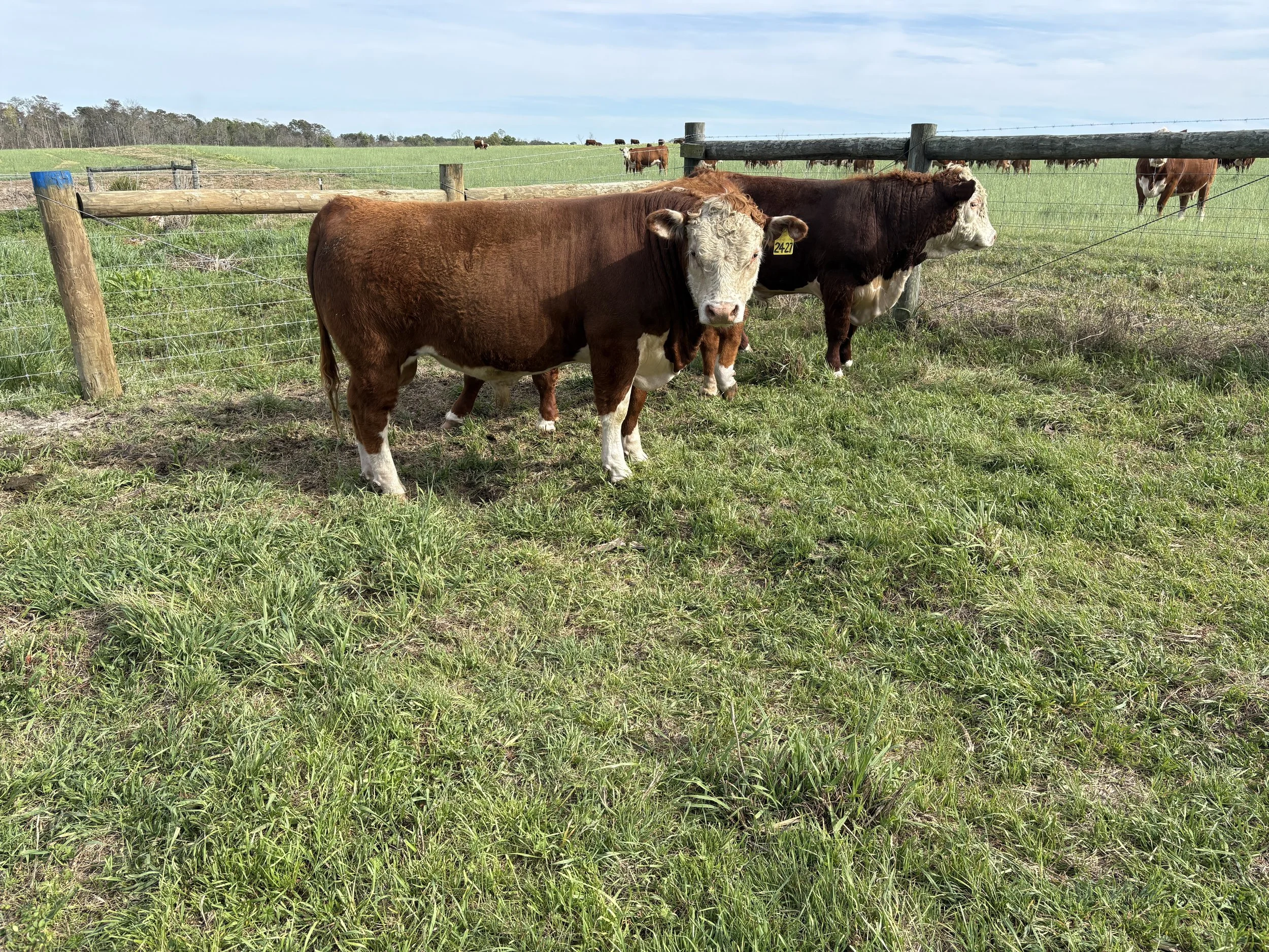 Hereford bulls are 15-16 months old. All bulls have passed a semen test. Predicted EPDs are listed at the bottom of the page. Call or text for more information! $4500 each